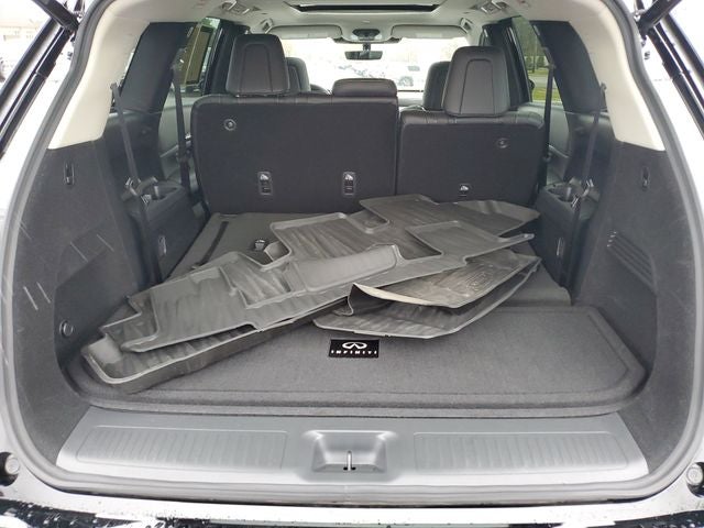 Certified. Black Obsidian 2026 INFINITI QX60 PURE FWD 9-Speed Automatic 2.0L I4 PDI Turbocharged DOHC 16V 268hp *CERTIFED*, *1 OWNER*, *LIFETIME POWERTRAIN WARRANTY*, 3rd row seats: bench, Apple CarPlay/Android Auto, Auto High-beam Headlights, Blind Spot Warning, Brake assist, Dual front impact airbags, Dual front side impact airbags, Electronic Stability Control, Four wheel independent suspension, Fully automatic headlights, Heated Front Bucket Seats, Knee airbag, Navigation system: Google Built-in, Overhead airbag, Power Liftgate, Power moonroof: Panoramic, Rear Parking Sensors, Reclining 3rd row seat, Remote keyless entry, Steering wheel mounted audio controls, Tailorfit-Appointed Seating Surfaces, Traction control.